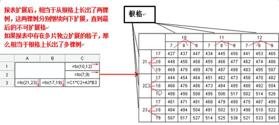 报表有个首格(根格),报表中的扩展单元格是逐级扩展的,有主格、附属格的概念,呈树状的结构,而根格则是这棵树的根。如下图所示: