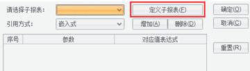 3, 【定义子报表】按钮,弹出“报表属性”窗口,在这里我们增加一个子报表,再点【确定】按钮完成,如图所示: