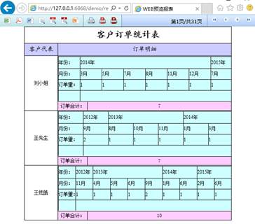 主报表保存为7.2.rpx,子报表保存为7.2_sub.rpx,嵌入式主子报表的预览效果如下图所示: