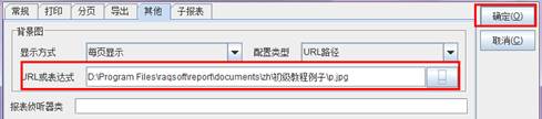 在工具菜单中选择【报表属性】,弹出报表属性窗口,选择【其它】标签,在【URL或表达式】中选择我们要做为背景图案的票据扫描件,点【确定】即可如图所示: