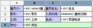 2, 在B1单元格输入表达式:= ds1.select(雇员ID:1,雇员ID==@ID)