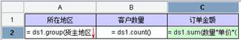 4, 在C2单元格输入表达式:= ds1.count()