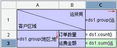 5, 在C3单元格输入表达式:= ds1.sum(运货费)