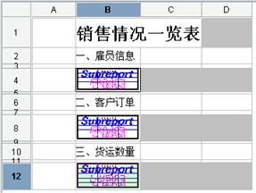 引入式子报表的特点是主报表单元格根据子报表的行数列数,双向同时扩展,子报表有几行几列,主报表中就扩展出几行几列,子报表占用主报表的空白行列,格线严格对齐。