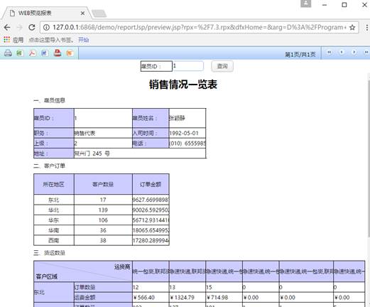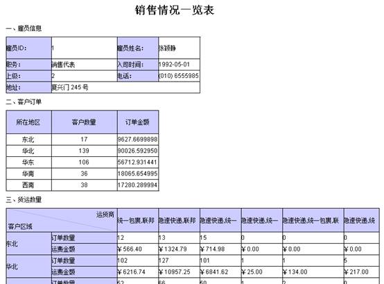 主报表保存为7.3.rpx,引入式主子报表的预览效果如下图所示: