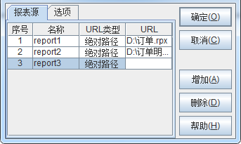 选择报表-报表组设置,就可以再次打开报表源编辑窗口,点击增加按钮,添加新的报表url。