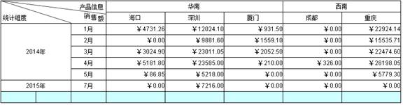 从上图可以看出,该报表出现了两片纵向扩展区域,这两片纵向扩展区域看起来毫无关系,但是格线严格对齐。下面我们对这个报表继续做改变,在新增加的行中写入计算表达式,如下图所示: