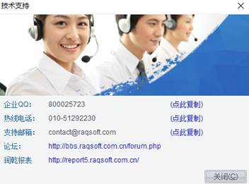 本菜单项的功能是用于查看关于润乾报表的技术支持信息。