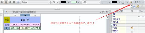 点击【确定】按钮后,在设计器工具栏的样式下拉列表里就会列出刚刚定义的样式名。如下图所示: