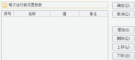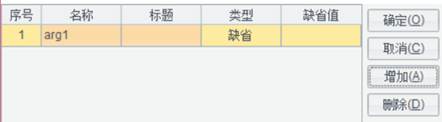 在参数定义界面中,点击【增加】按钮,可添加一个参数定义,你可以编辑参数的名称、标题、类型、缺省值等属性;在参数列表中选择一个参数,点击【删除】按钮,可删除该参数。编辑完点击【确定】按钮即可。