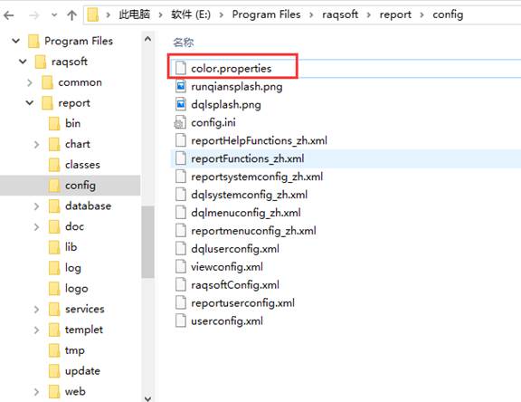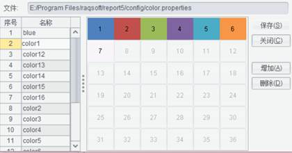报表设计器默认安装路径\report\config\color.properties)。