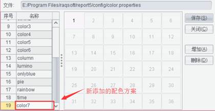 统计图配色方案保存在配色方案文件color.properties中(配色方案文件默认的存放位置: