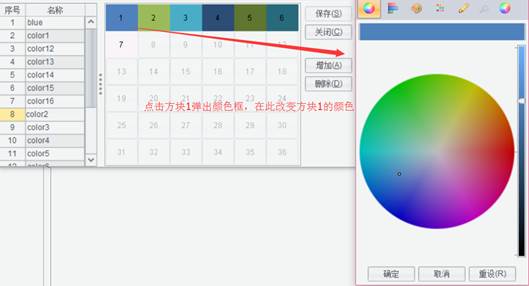 选中左边配色方案列表中的配色方案,点击【删除】按钮,可以删除已有的配色方案。编辑完成后点击【保存】按钮,您对统计图配色方案的修改就会保存到配色方案文件中。