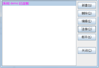 【新建】按钮可以新建一个数据源;【删除】按钮可以删除左边列表框中选中的数据源;【编辑】按钮可以修改左边列表框中选中的数据源定义信息;【连接】按钮用来连接左边列表框中选中的数据源;【断开】按钮可以断开一个数据源的连接。