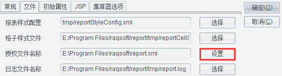 润乾报表设计器的授权文件所在位置。可通过【设置】按钮查看当前授权。