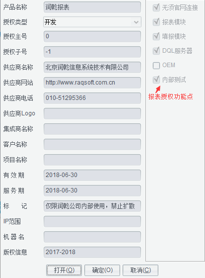 如果要重新配置授权文件可以点击设置授权文件窗口【打开】按钮选择新授权文件。