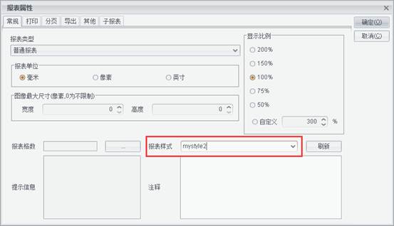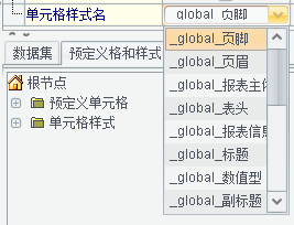 报表属性中设置报表样式后,该样式会自动列入到右侧属性中的单元格样式名列表中,如下图所示:
